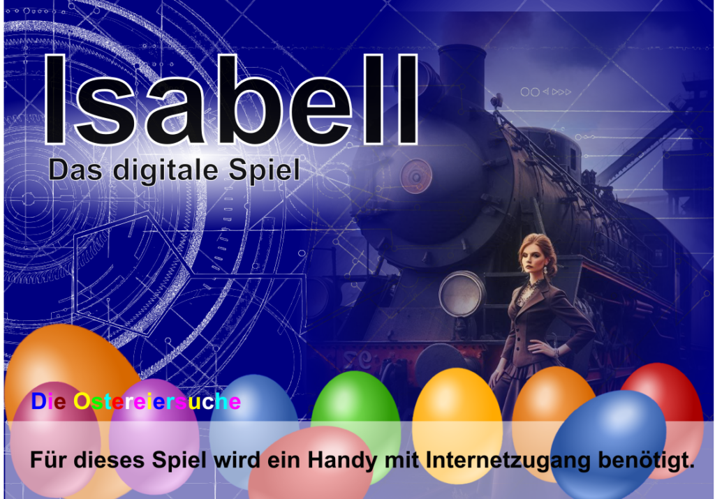 Wir haben für Euch unser beliebtes Suchspiel in eine Ostersuche verwandelt. Taucht ab in das Jahr 1980 und erlebt wie wichtig die Wismut und die Eisenbahn für die Stadt Aue waren. Isabell führt Euch durch die fiktive Geschichte und bringt das damalige Leben näher. Unser Osterhase hat Eier versteckt. Wählt ein Paket. Daran findet Ihr ein Schloss, auf dem drei Farben abgebildet sind. Welche sind es? Zählt nun während der ganzen Geschichte die Eier, zu Euren passenden Farben.
